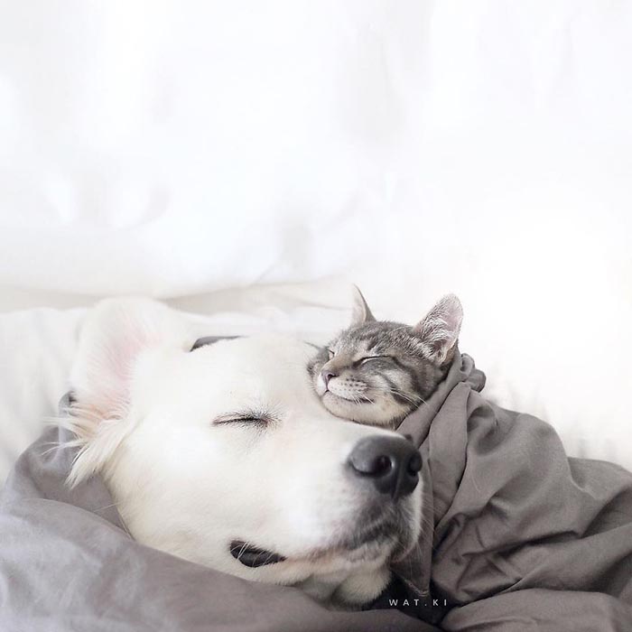 As fotos da amizade destes 2 cães e 1 gato derrete qualquer coração.